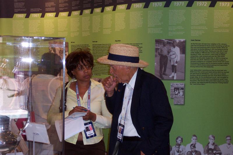 Bob speaking with Tania Padgett of Newsday.com for her article on Hall of Fame exhibit .